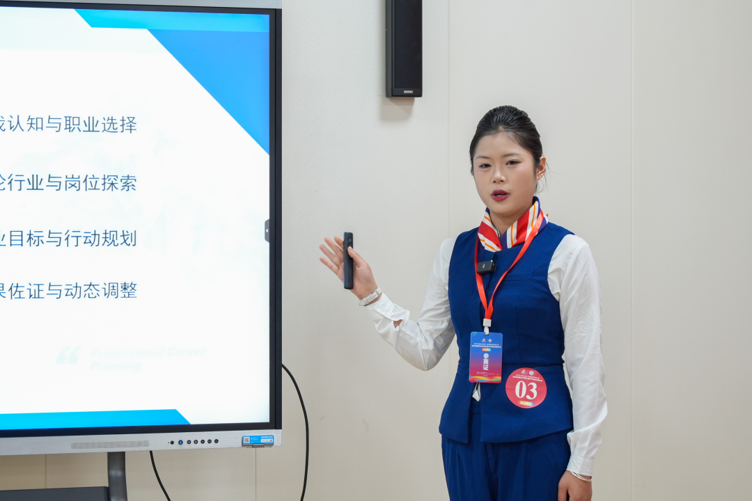 学校党委委员、副校长贺梦依出席决赛开幕式并指出,职业规划是连接学业与事业的桥梁,比赛既是学生展示与竞技的平台,也是认识自我、规划未来的重要契机。她鼓励学生明确自身优势与志向,将个人发展融入国家和社会需要,实现自我价值与社会贡献的统一。