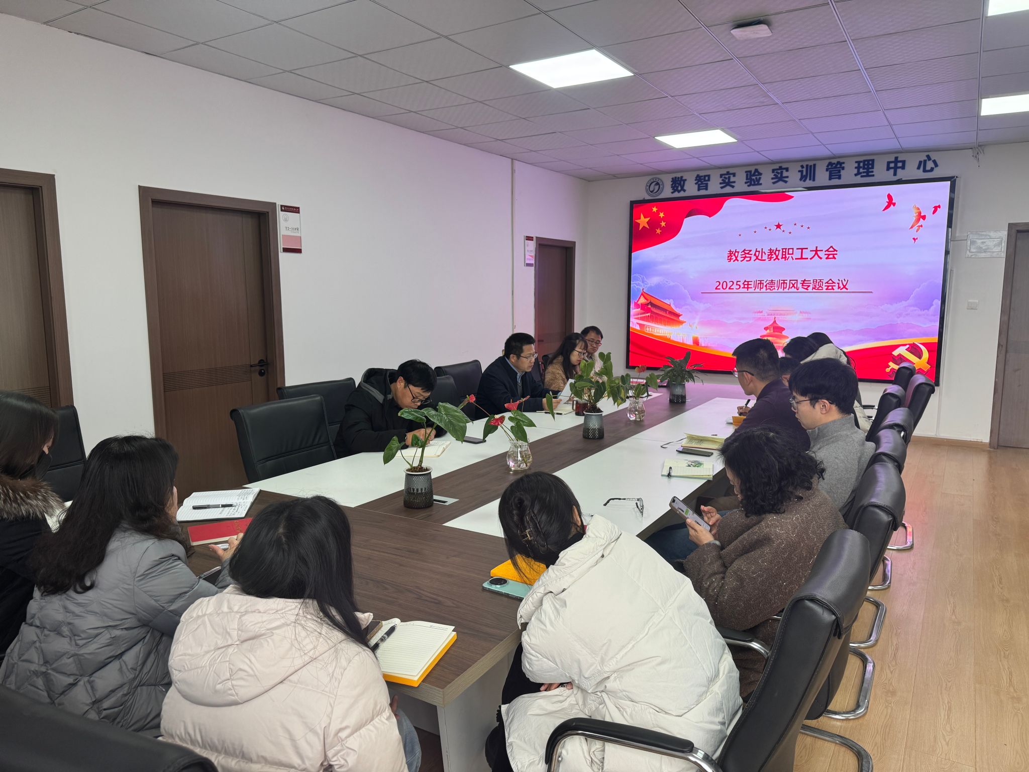 为持续强化师德师风建设,筑牢教务处教师思想根基,2025年12月4日,教务处召开2025年师德师风建设专题会议,全体教师参加。会上,雷建海处长传达了省教育厅文件精神,通报了全省违反师德师风典型案例。强调全体教师要以案为鉴,警钟长鸣,将师德师风建设要求转化为个人的思想自觉和行动自觉,牢记为党育人、为国育才的初心使命,做到关爱学生,潜心育人。最后提醒全体教师冬季到了,安全用电,确保不发生安全事故。
